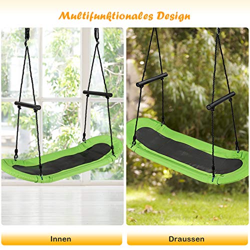 COSTWAY Nestschaukel oval, Skateboard Schaukel mit Griffen, Kinderschaukel bis 150 kg belastbar, Outdoor Mehrkindschaukel, Baumschaukel, Gartenschaukel für Kinder & Erwachsene (Grün)