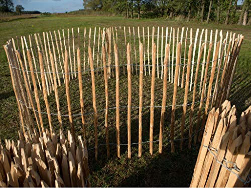 Ein Haselzaun ist eine natürliche Möglichkeit, Ihr Grundstück oder Ihren Garten zu umzäunen. Hergestellt sämtliche bester Qualität mit Spalt- und Rinden-Haselnuss. Zur Herstellung wird 2,0 mm verzinkter Stahldraht verwendet, der eine besonders gute Witterungsbeständigkeit gewährleistet. Der Zaun wird in Form einer Rolle verkauft, deren Länge nach dem Entfalten 5 Meter beträgt.
