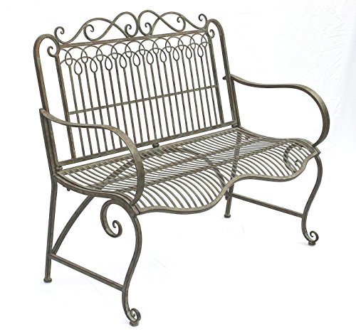 Die nostalgisch und elegant gestaltete Sitzbank an Stelle 2 Personen ist allesamt Metall gefertigt und bietet zudem eine bequeme Sitzfläche.