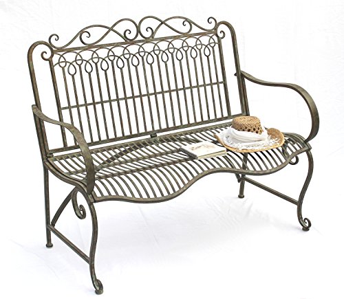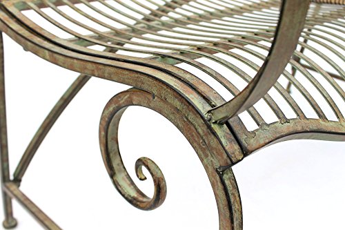 Bringen Sie durch dieser schwungvoll gearbeiteten Parkbank in der Farbe Patina Grün Oll einen Spur von Romantik in Ihr Heim und Garten.