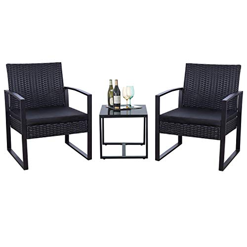 Schöne Sitzgruppe MALTA 3-teilig. Gestell leer Metall, schwarz beschichtet. Bespannung Polyrattan schwarz. Via Sitzpolstern.