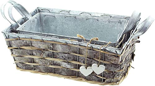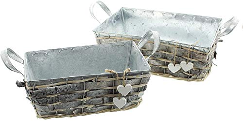 Zink-Kossäte „Weißes Herz“ im 2er Set – Zinkwanne in hergebracht mattem Grauton via seitlichen Griffen