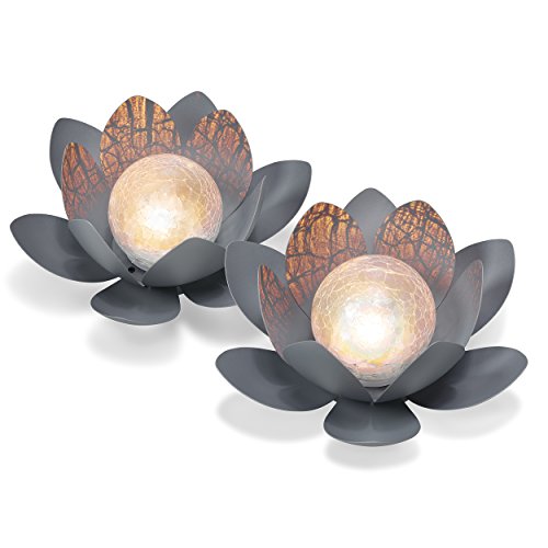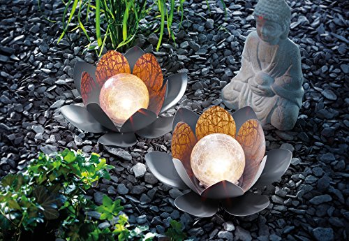 Solar Lotusblüten 2er-Set zum Vorteilspreis! – Unsere Solar Lotusblüten vereinen den robusten Blütenkranz nicht mehr da grauem Metall mit dem Glanz und der Eleganz der innenliegenden Echtglas-Kristallkugel.