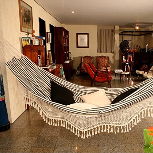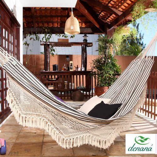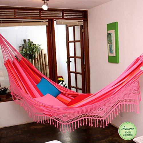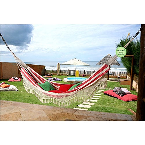 Die Familien Hängematte Azaleia ist eine exklusive Hängematte per eleganter Zierborte ganz 100% Baumwolle. Sie wird in Brasilien, dem Land der Hängematten, in hochwertiger Handarbeit produziert. In Anbetracht ihre verstärkte Webkante sind sie außerordentlich belastbar. Ihre außerordentlich breite Tuchfläche macht die Azaleia massiv komfortabel. Die Kissen sind in keiner Weise im Zoll inbegriffen, können im Unterschied dazu dicht bestellt werden. Liegefläche: 265 x 170 cm Belastbarkeit: 180 Kg Gesamtlänge: 400 cm