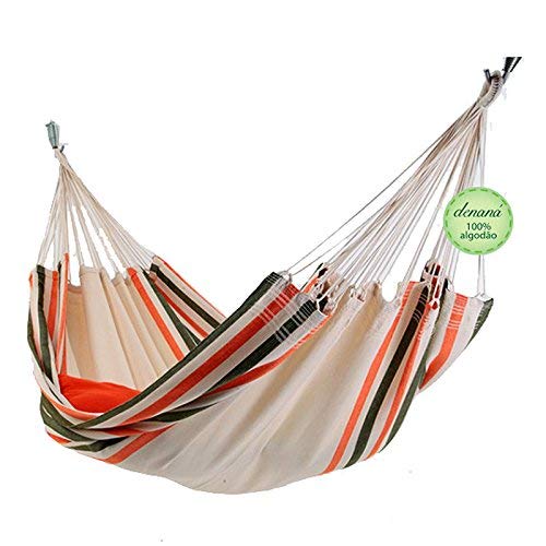 Die Familien Hängematte Terra ist eine außerordentlich geräumige Hängematte in der Farbe natur mit orangefarbenen und grünen Streifen. Mit dieser Hängematte bringen Sie einen Ort der Ruhe und Entspannung in Ihre Wohnung oder Ihren Garten. Sie wird in Brasilien dem Land der Hängematten in hochwertiger Handarbeit produziert.
