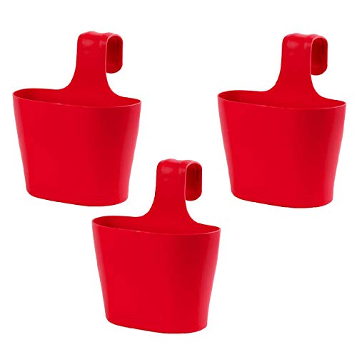 Design 3x Blumenkasten / Blumenkübel in der Farbe Rot mit einem Fassungsvermögen von 2,8 Liter, eine Länge 22,5 cm / Gesamtbreite 11,5 cm / Gesamthöhe 26,5 cm / Pflanztiefe ca. 16,5 cm
