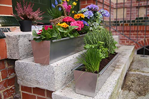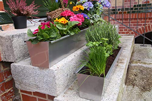 Stil und Herstellung: Der Blumenkasten besticht durch schlichte, authentische Eleganz und die unverwechselbare Farbe von echtem Edelstahl; Das in Leipzig/Deutschland gefertigte Produkt wird in Handarbeit in einer Traditionsmanufaktur angefertigt, welche nachhaltig Ressourcen nutzt, um einzigartige Design Stücke herzustellen