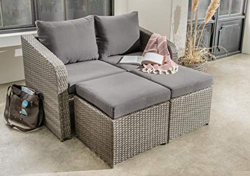 Das hochwertige, mehrfarbige Polyrattan Geflecht ist sehr stabil. Inklusive Polsterung mit Reißverschluss