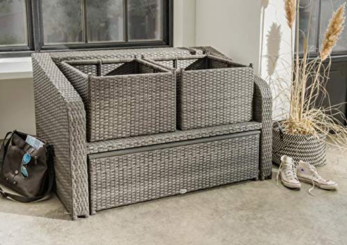 Das hochwertige, mehrfarbige Polyrattan Befehl ist außerordentlich sicher. Inklusive Polsterung über Reißverschluss