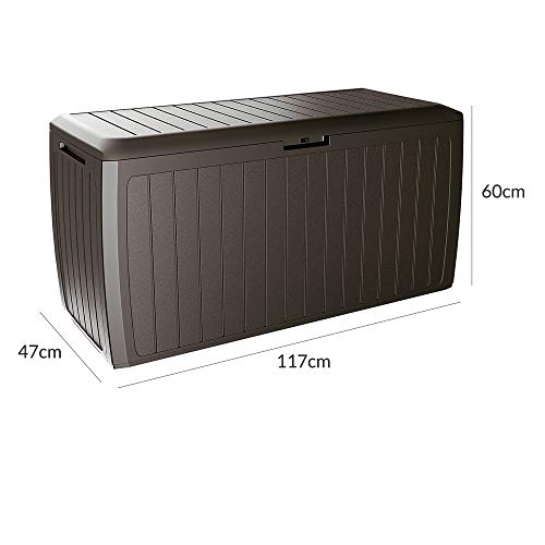 Abschirmung: Unsere Auflagenbox bietet mit ihren 290 Litern Stauraum Platz statt dessen Ihre Sitzauflagen, Kissen und Ausweichlösung Gartenaccessoires, demgegenüber vulgo statt dessen Werkzeuge, Spielzeuge und vieles mehr. So bietet die Kissentruhe durch ihre UV- und Wetterbeständigkeit den optimalen Abschirmung.