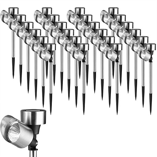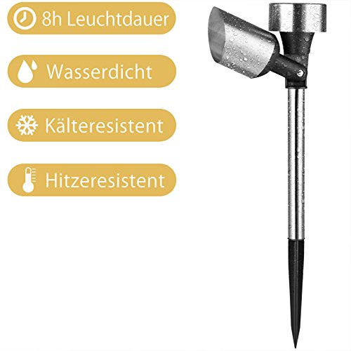 PRODUKTVORTEILE: Die Lampenkörper der Wegeleuchten sind die Gesamtheit Edelstahl und besitzen darüber hinaus einen 180° schwenkbaren Leuchtkörper. Also lassen sich die Gartenleuchten je nach Verwendungszweck maßgeschneidert eichen. Die Wegeleuchten werden mit einem Erdspieß in der Erde verankert und sind unabhängig davon noch spritzwassergeschützt und besitzen die Schutzklasse IP44.
