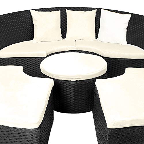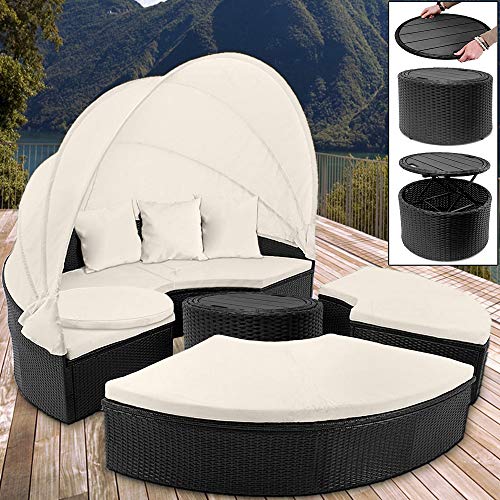 HOCHWERTIGE MATERIALIEN – Gefertigt ist die hochwertige Gartenliege aus galvanisiertem, pulverbeschichtetem Stahl und handgewobenem, UV-beständigem Polyrattan – für beste Wetterbeständigkeit. Hohe Belastbarkeit bietet ein verstärktes Untergestell. Weitere Vorteile sind höhenverstellbare Standfüße, damit erreichen Sie bekannt als auf unebenem Untergrund einen sicheren Stand und abnehmbare, waschbare Auflagen. Damit ist die Garten Insel besonders wetterfest, strapazierfähig und pflegeleicht.