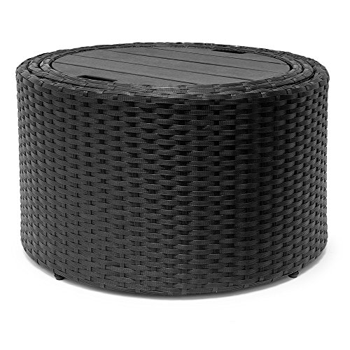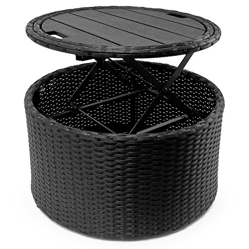 Der WPC Teleskoptisch ist aus einer robusten Holz-Kunststoffverbindung und kann schnell und einfach ausgefahren werden. Die Tischplatte kann gleichzeitig als Tablett benutzt werden und hat zum sicheren Abschalten 3 rutschfeste und höhenverstellbare Kunststofffüße. Der Tisch hat außerdem einen extra Innenboden aus Polyrattan. So kann man den Innenraum bekannt als als Stauraum nutzen.