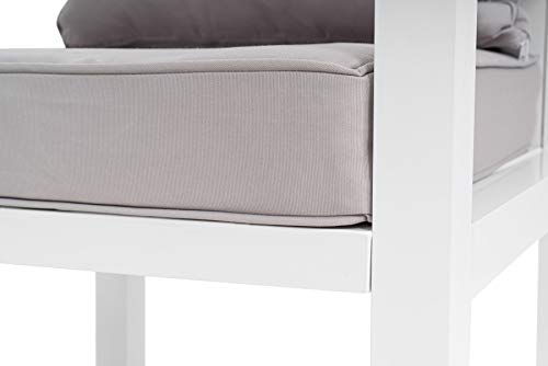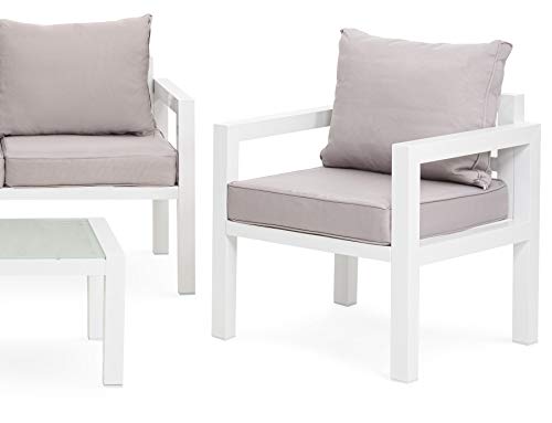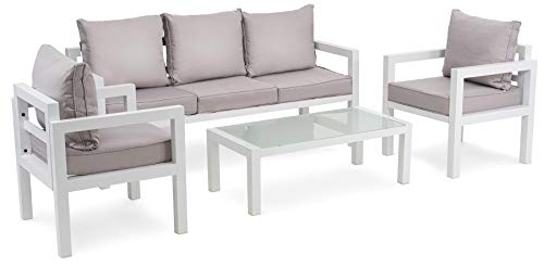Der pulverbeschichtete Rahmen der Sitzgarnitur ist aus wetterbeständigem, haltbarem Aluminium was Haltbarkeit über Jahre hinweg gewährleistet.