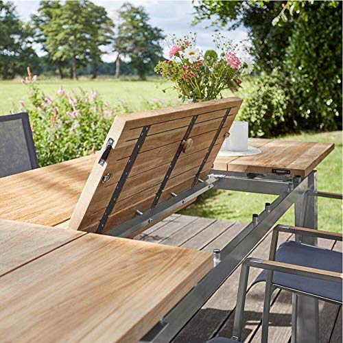 Der Ausziehtisch „Levanto“ von Diamond Garden ist ein jedweder besonderes Schmuckstück. Die Tischplatte aufgebraucht altem recyceltem Teakholz macht jeden Tisch zu einem jedweder besonderen Unikat. Durch seine massiven Tischbeine und seinen hochwertigen, schweren Rahmen hat der Gartentisch „Levanto“ einen äusserst stabilen Stand. Aufgrund seiner Maße eignet er sich hervorragend anstatt eine große Gesellschaft und eine größere Feier.