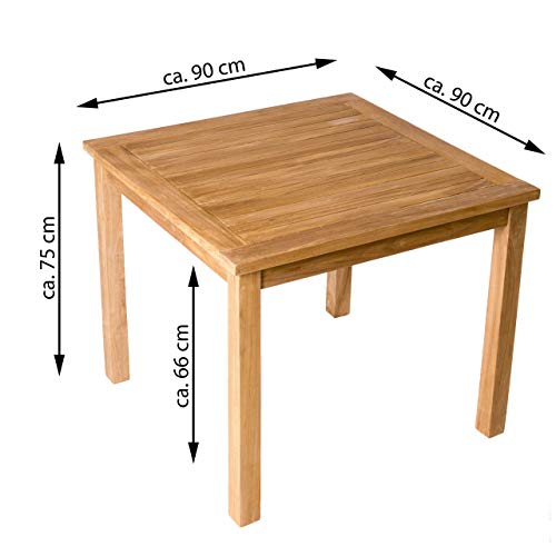 Teakholz ist unempfindlich gegenüber Witterungseinflüssen. Nur ist der Terrassentisch hervorragend für die Verwendung im Außenbereich sinnvoll. Sie erhalten ein langlebiges, stabiles Naturprodukt Leer behandeltem Teakholz.
