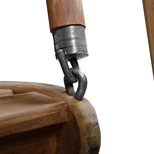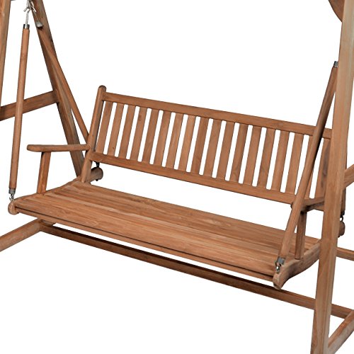 Diese hochwertige Gartenschaukel wurde in reiner Handarbeit aus massivem Teakholz gefertigt und bietet mit einer Sitzfläche von 150 cm Breite genügend Platz für 3 Personen zum Entspannen, Relaxen, Chillen und Sonnenbaden auf der Terrasse, auf dem Balkon oder im Garten.
