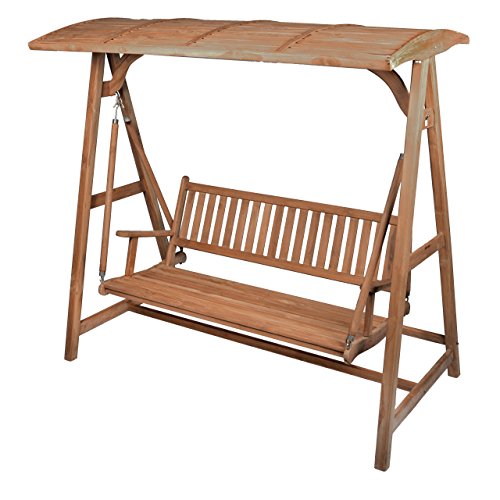 Diese DIVERO Hollywoodschaukel ist ein schickes Gartenmöbel, auf dem bis zu 3 Personen bequem abbrummen können. Auf ihr lässt es sich prima entspannen. Die schwingenden Bewegungen beruhigen die Unterbrechen, absenken den Blutdruck und lassen den Alltagsstress verfliegen. Das Gestell ist massiv und besteht aus langlebigem, wetterfestem Teakholz. Ein Baldachin sorgt für Schatten.