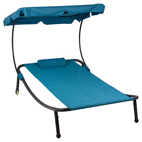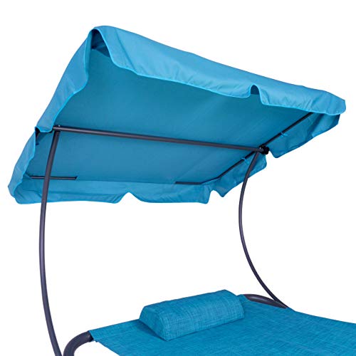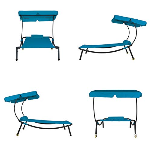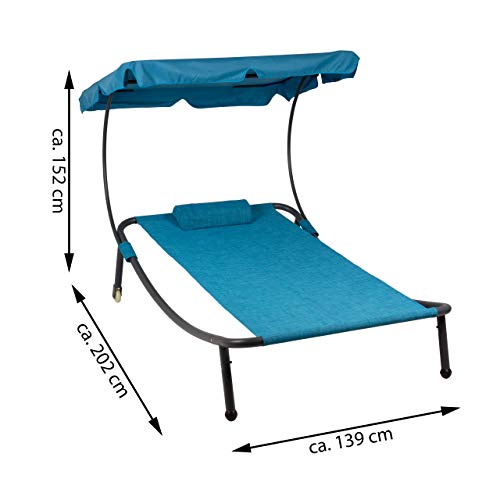 Die komfortable Relaxliege mit integriertem, wasserabweisenden Sonnendach und abnehmbarem Kopfkissen verspricht entspannte Stunden im Garten, auf der Terrasse oder am Pool.
