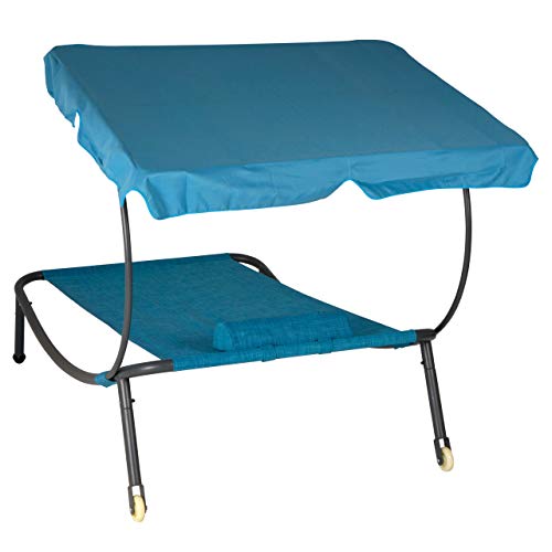 Um das Gartenbett perfekt nach Ihren Bedürfnissen und der Sonne organisieren zu können ist dieses mit 2 Rollen am Kopfende versehen. Zusätzlich ist das schattenspendende Dach verstellbar.