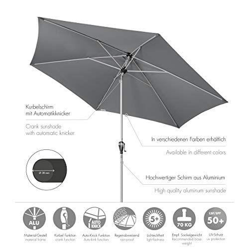 Der stabile Sonnenschirm aus pulverbeschichtetem Aluminium ist ideal für den Garten, Balkon oder die Terrasse