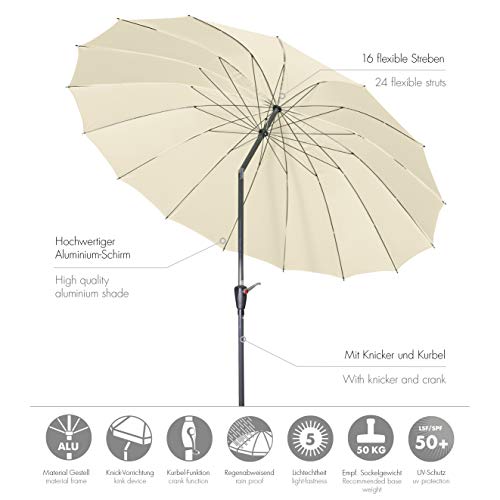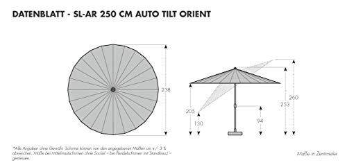 *Lieferumfang: Leichtmetall Kurbelschirm Asia Look SL-AZ 250 Auto Tilt – ohne Schutzhülle, ohne Granit Trolley und ohne Füllsockel