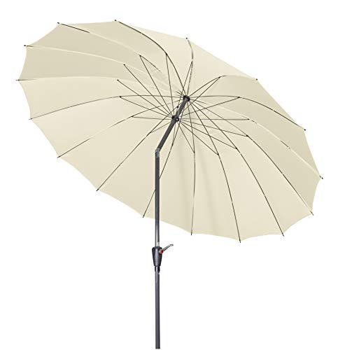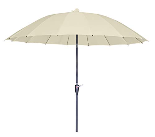 Mit diesem hochwertigen Sonnenschirm von doppler im asiatischen Look haben Sie einen echten Hingucker auf Ihrem Balkon oder Ihrer Terrasse! Das runde Schirmdach gibt dem besonderen Gartenschirm ein fernöstliches Erscheinungsbild. Denn wäre es, wenn Sie diesen zu Ihrem asiatisch bzw. japanisch eingerichteten Garten verallgemeinern? Der wunderschöne Terrassenschirm lässt sich mittels Kurbel ausgesprochen leicht anbrechen und das Gestell besteht jedweder leichtem, rostfreiem Leichtmetall. Der regenabweisende Polyesterbezug hat eine gute Lichtechtheit und einen UV-Abschirmung von 50+.