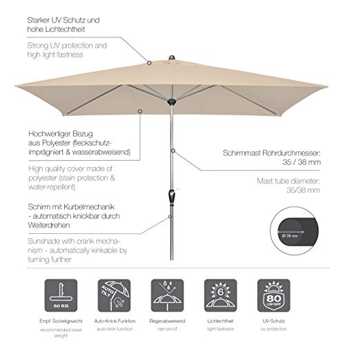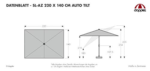 *Lieferumfang: doppler Sonnenschirm Aluminium Crank Umbrella SL-AZ 220×140, rechteckig, Schirmdach automatisch knickbar – ohne Sockel