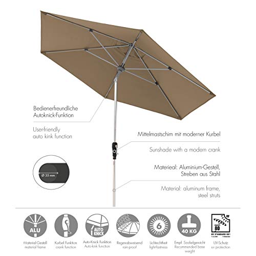 Freuen Sie sich auf einen runden und eleganten Sonnenschutz-Experten mit einer Größe von ca. 275 cm!Die Features: