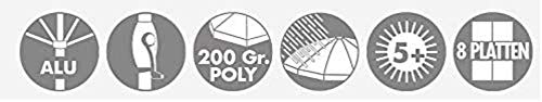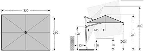 Massive Erfüllung jedweder Aluminium mit einem Rohrdurchmesser von 80 x 53 mm. Der Schirm wird inkl. passendem Kreuzschirmständer geliefert (für Platten 50×50 cm).