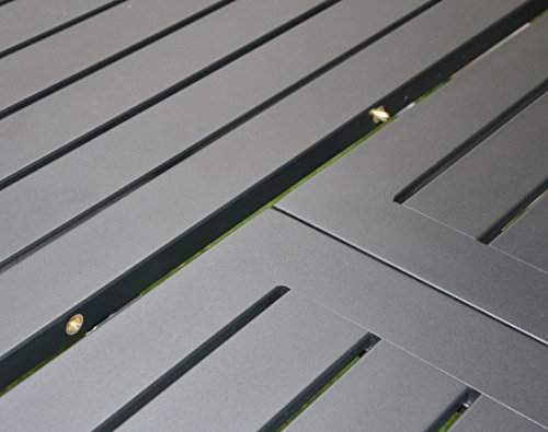 Komplett aus Aluminium, dadurch absolut wetterfest. Platte schwarz, Gestell silber.