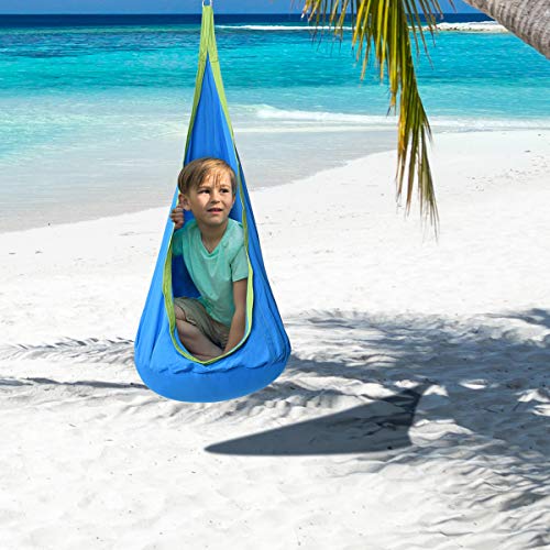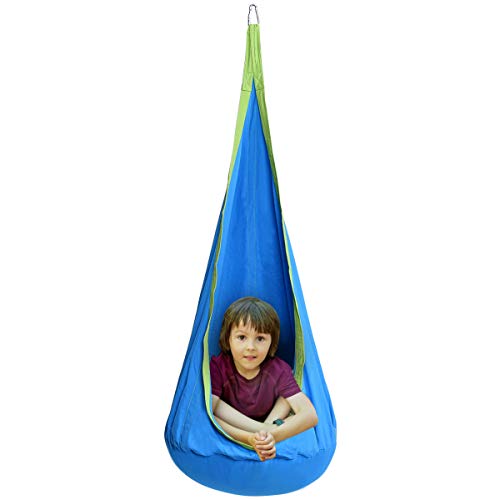 Hängehöhle zum Schaukeln, Spielen und Wohlfühlen für Kinder ab 3 Jahren. Die hochwertige Umsetzung und das atmungsaktive Material ist bis zu max. 80kg abgehärtet. Durch die praktische Konzeption lässt sich diese Kinderschaukel problemlos Innen wie Außen aufhängen. Eingepackt in die weiche Hängehöhle können sich die Kinder ganz geborgen fühlen.