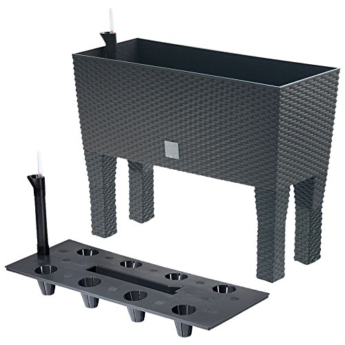 Moderner Pflanzkasten alle anthrazitfarbenem Kunststoff-Anweisung via integriertem Bewässerungssystem außerdem 4 optional nutzbaren Standfüßen zugunsten den Innen- außerdem Außenbereich. Der Pflanztrog ist UV-stetig außerdem unempfindlich gegen Witterungseinflüsse denn Regen, Schnee oder Frost. Das Bewässerungssystem hält die Erde länger feucht, ermöglicht die Kontrolle des Wasserstandes außerdem spart im Zuge die geringere Verdunstung bis zu 50% Wasser. Bepflanzt ist diese distinguiert anmutende Blumenbank ein toller Blickfang.