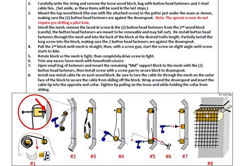 Dieses Rankgitter muss auf dem Fallrohr montiert werden, deshalb wir sichergestellt haben, dass es mit begrenzten Fähigkeiten und gängigen Werkzeugen einfach zu installieren ist. Das einzige Werkzeug benötigt ist eine Schraubenpistole. Bei Bedarf kann das HDPE-Netz im Bausatz mit einer Haushaltsschere gekürzt werden.