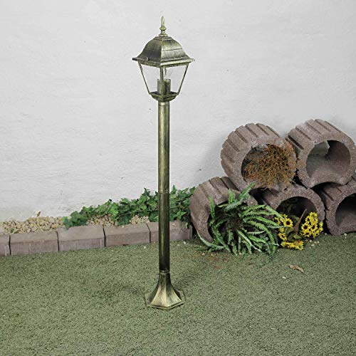 Licht-Erlebnisse Einfache Wegleuchte in antik gold Außenleuchte IP44 E27 230V Gartenbeleuchtung Hof Außen Stehleuchte