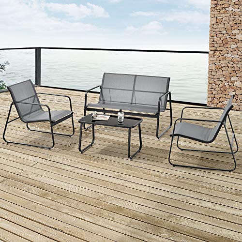 ![[en.casa] Gartenmöbelset Palencia Sitzgruppe Gartengarnitur Sitzbank für 2 Personen mit Couchtisch Gestell aus Stahl Hellgrau Schwarz – Bild 4](https://images-na.ssl-images-amazon.com/images/I/410Mkoz25YL.jpg)