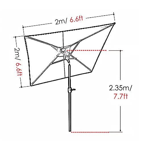 ☂ Größe: Breite × Höhe 2 × 2 m (6,6 × 6,6 ft). Platzieren Sie 4 bis 6 Stühle, die voll genug sind, um einen runden, quadratischen oder rechteckigen Tisch innerhalb von 70 “ zu erreichen.