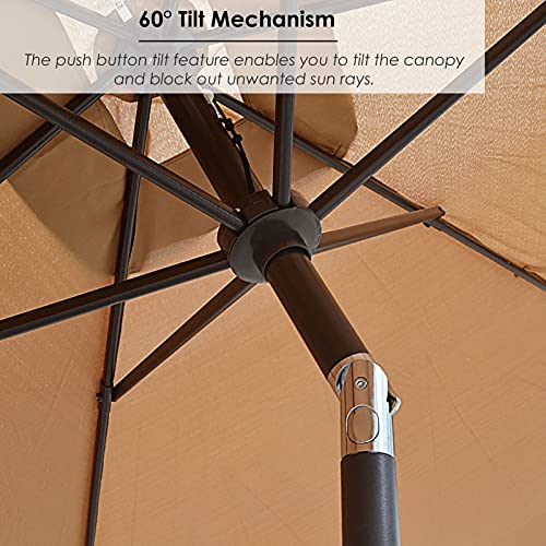 – 60 ° Neigungsmechanismus: Mit der Neigungsfunktion per Druckknopf können Sie den Baldachin kippen und unerwünschte Sonnenstrahlen zusperren.