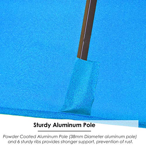☂ Robuste Stange und Rippen: Pulverbeschichtete Aluminiumstange (Aluminiumstange mit 38 mm Durchmesser) und 6 stabile Rippen bieten stärkeren Halt und umschiffen Rost.