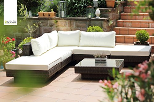 Mit dieser Sitzgruppe von essella-Gartenmöbel abtransportieren Sie sich Ihr Wohnzimmer in den Garten. Genießen Sie absoluten Sitzkomfort in traumhafter Gartenlandschaft oder den Ausblick von Ihrer Terrasse. Die Lounge-Gebiet bietet genügend Platz für gesellige Runden mit Freunden und Familie.
