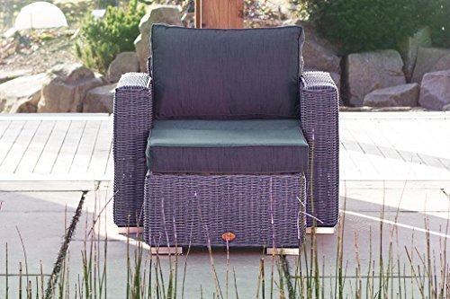 Das hochwertige Polyrattangeflecht erfüllt neben einer eleganten Optik zudem die hohen Anforderungen an wetterbeständige Gartenmöbel.