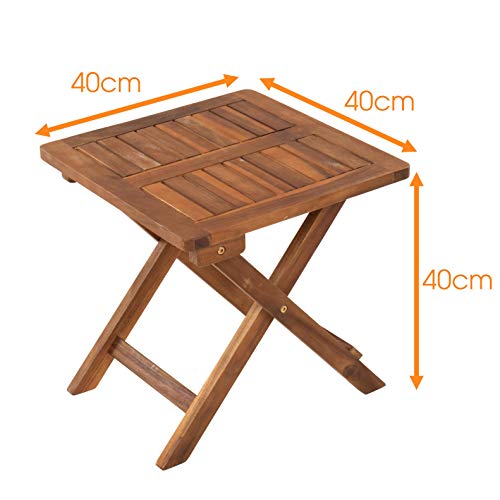 Maße: 40 x 40 cm; Farbe: Braun; Material: Holz (Akazie); Stärke Tischplatte: ca. 2 cm