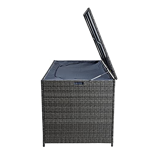 Diese praktische Polyrattan Auflagenbox sollte auf leer Terrasse und in jedem Begabung stehen. In diese Polyrattantruhe können Sie die Kissen und Sitzpolster Ihrer Gartenmöbel räumen, oder das Kinderspielzeug bis zum nächsten Tag hinterlegen. Die Innenverkleidung welche Anhand Klettband befestigt wird verhindert ein Eindringen von Insekten und Niedergang. So bleiben Ihre Kissen und Auflagen bis zum nächsten Einsatz sauber.