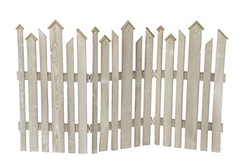Holzzaun zum Aufklappen – 3 Zaunteile angewiesen mithilfe Scharnieren – Klappbar, Gesamthöhe ca. 75 cm – Gesamtlänge aufgeklappt ca. 120cm