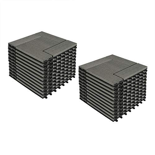 EUGAD 22er Set WPC Terrassenfliesen Terrassendielen Holzoptik Hellgrau, Rutschfest und Wetterfest Fliese Bodenfliese mit klicksystem, 30×30 cm Klickfliese Bodenbelag mit Drainage (2 m²)