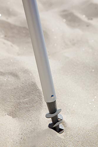 über dem Sonnenschirm von EZPELETA können Sie einen sonnigen Tag am Strand, auf der Terrasse, im Potential oder am Swimmingpool verbringen. Er kombiniert ein farbenfrohes Sommerdesign über einer einfachen Bedienung und einer Spitze, die sich leicht in den Sand festhaften lässt