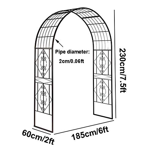 Träumen Sie von einem lebhaften Garten? Diese dekorative und funktionelle Laube hat einen stabilen Metallrahmen, der mit einer schwarzen Oberfläche beschichtet ist, um Rost zu umgehen. Der Gartenbogen eignet sich perfekt zur Unterstützung leichter Kletterpflanzen und Weinreben oder zur Götze kleiner hängender Akzente. Schaffen Sie einen schönen Eingang für Ihren Garten. Es kann Ihren Garten leicht in ein farbenfrohes Display mit verschiedenen Blumen verwandeln. Darüber hinaus trägt sein stabiler Metallrahmen mehrere hängende Gegenstände auch mit ihren Früchten, wie Kürbissen, Bohnen, Himbeeren usw.