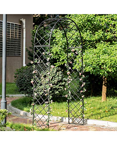 Träumen Sie von einem lebhaften Garten? Diese dekorative und funktionelle Laube hat einen stabilen Metallrahmen, der mit einer schwarzen Oberfläche beschichtet ist, um Rost zu vermeiden. Der Gartenbogen eignet sich perfekt zur Unterstützung leichter Kletterpflanzen und Weinreben oder zur Abbild kleiner hängender Akzente. Schaffen Sie einen schönen Eingang für Ihren Garten. Es kann Ihren Garten leicht in ein farbenfrohes Display mit verschiedenen Blumen verwandeln. Darüber hinaus trägt sein stabiler Metallrahmen mehrere hängende Gegenstände auch mit ihren Früchten, wie Kürbissen, Bohnen, Himbeeren usw.