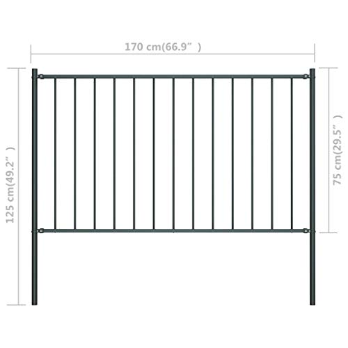 Dieser Gartenzaun mit Pfosten hat ein einfaches, daher praktisches Design und passt in jeden Garten. Aus stabilem, pulverbeschichtetem Stahl gefertigt, wird dieses Zaunelement eine robuste und langlebige Zwischenwand für Ihren Garten repräsentieren. Unser witterungs- und korrosionsbeständiges Zaunelement ist eine ideale Abstimmung, um unerwünschte Gäste von Ihrem Eigentum fernzuhalten. Das Montagezubehör ist im Lieferumfang enthalten, sodass sich der Gartenzaun ganz einfach montieren lässt. Ablieferung umfasst 1 Zaunelement, 2 Pfosten und Montagematerial.