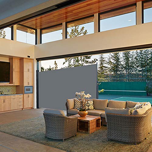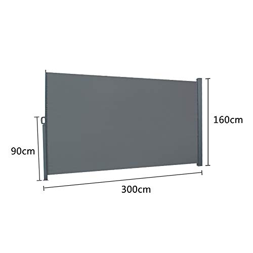 Was Sie bekommen: Eine große Seitenmarkise (1,6 x 3,0 m) mit Rückrollfunktion, Einfach zu installieren, einfach die Säule auf dem Boden tragen